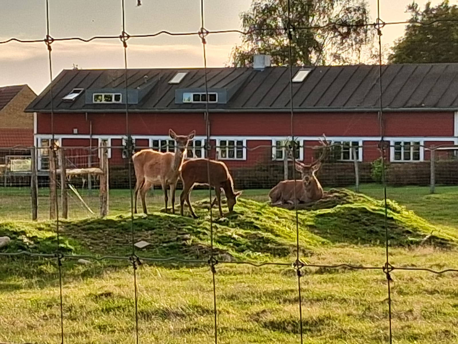 Die Fahrt verläuft ohne besondere Vorkomnisse, und so kommen wir im Laufe des Vormittags auf der Insel Fyn an. Wir haben eine sehr gemütliche Unterkunft in einem prima Hotel mitten in der Natur, sogar ein Wildgehege ist dabei.