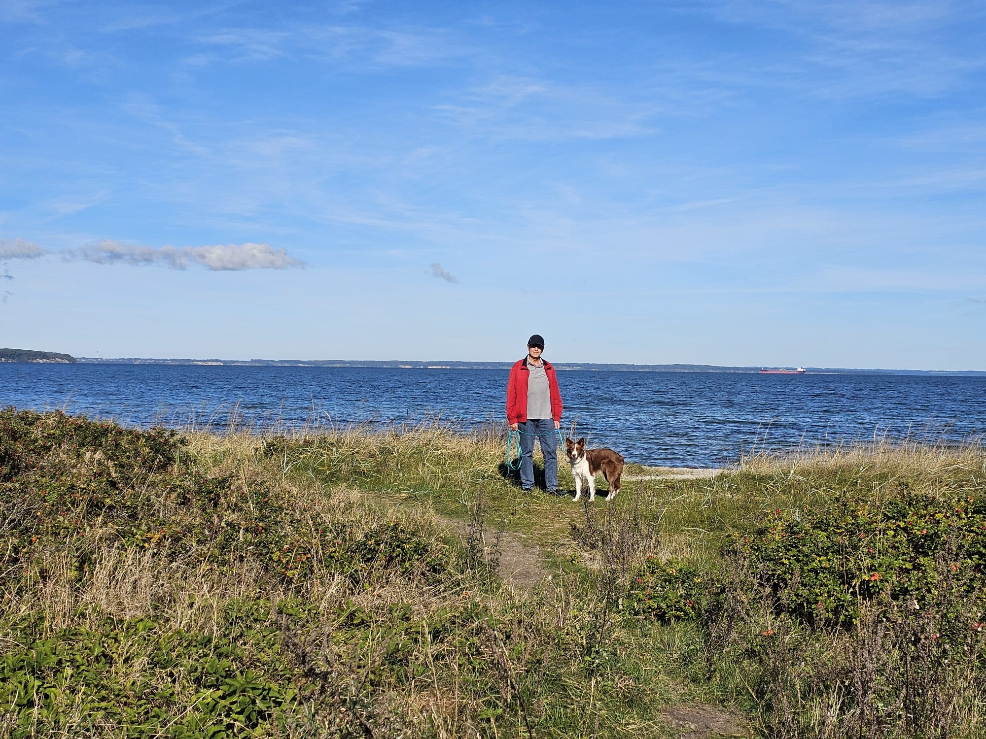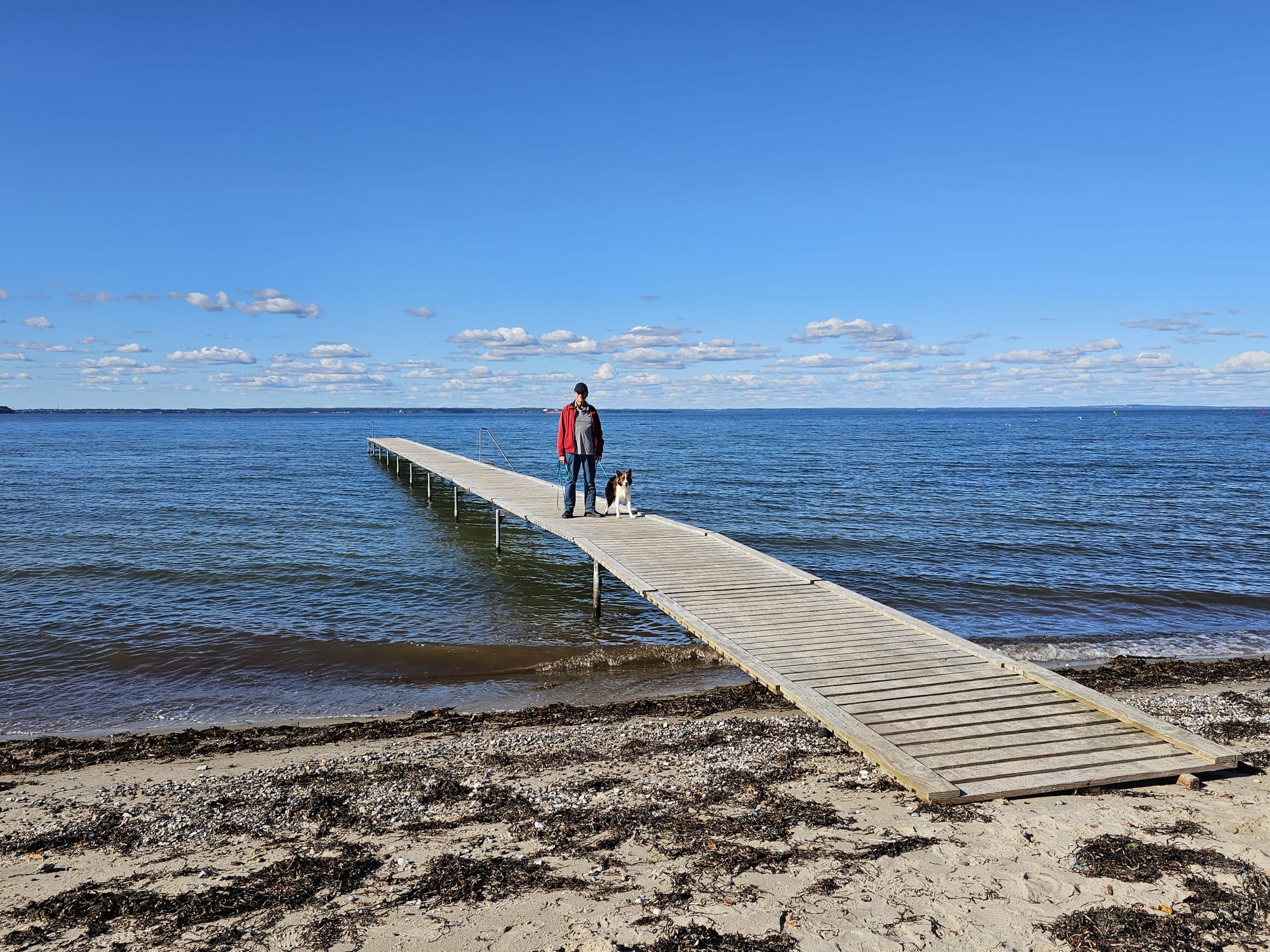 Das Frühstück am nächsten Morgen im Hotel ist sehr lecker, und auch der Frühstücksraum ist sehr ansprechend gestaltet. Danach verbringen wir den Tag wieder, wie gestern auch, am Meer, denn das Wetter ist einfach bombastisch, richtig herrliches Spätsommerwetter, während wir von unserer Familie und unseren Freunden hören, dass es in Deutschland grau in grau und sehr nass zugeht. Am Abend sind wir bei Åsa zum Essen eingeladen, sie kocht mal wieder total lecker für uns. Und nicht nur Jeff verwöhnt uns mit Schmuseeinheiten, auch Spicey, Jeffs Sohn, freut sich riesig über uns, zwei ganz tolle, liebenswerte Burschen sind das 💕